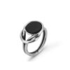 Anillo de acero inoxidable Boccadamo con superficie lisa negro y tres cristales negros. Producto italiano de alta calidad.