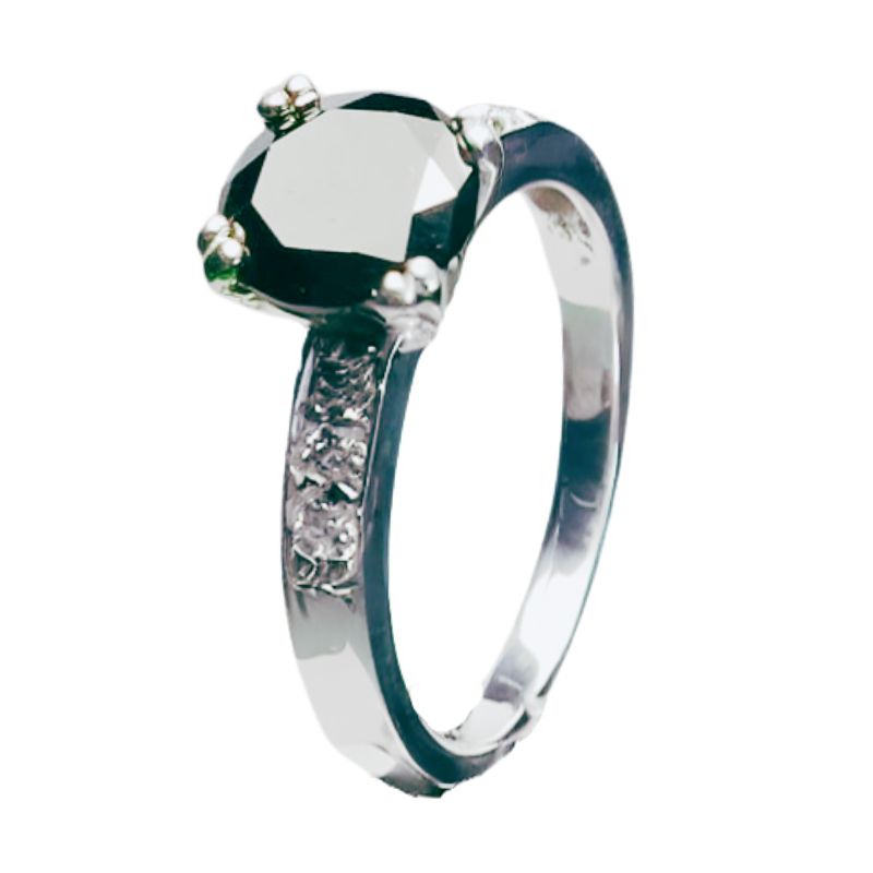 Anillo Solitario Plata 925 con Circón Negro y Microcircones